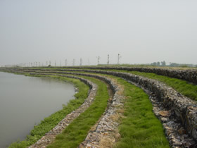 | 可植被性:格宾网箱内的孔隙水为水体流动创造了条件,实现了水与土体的自然交换,这使植被的自然生长成为现实,一段时间后,结构与自然真正达到和谐统一。 |