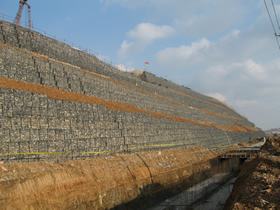| 自透水性:格宾网箱内的填石料间存在较多的孔隙,这利于结构后填土中孔隙水的排出,降低土体中孔隙水压力,保证土体的抗剪强度,有利于整个结构的稳定;同时,节省了传统支挡结构所需的排水设施的相关费用,降低了结构的整体造价。 |