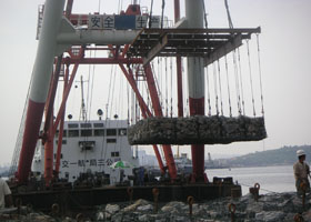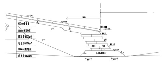 由于施工条件所限制,原有的常用挡墙类型(浆砌块石、混凝土)在这里很难得以施工;于海水的腐蚀性及强,一般的镀锌钢丝很快就会被全部腐蚀,结构的使用年限得不到保证;挡墙基床亦是采用10~100kg抛石,故常用的挡墙类型很难适应其不均匀表面以及后期沉降;工期短,施工难度大。