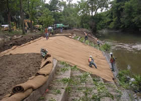 1.组成结构的网箱和拉筋网片可以预先制作,在现场用机械(或人工)分层填筑。这种装配式的方法,施工简便、快速,并且节省劳力和缩短工期。