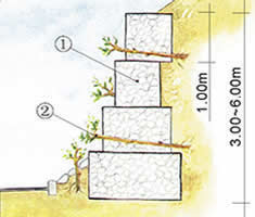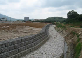 | 宝塔式绿格挡墙结构的断面性能介于以上两种断面形式之间,采用这种断面形式的工程有佛山新城区河涌生态护岸、苏州金鸡湖国宾馆生态挡墙等。 |